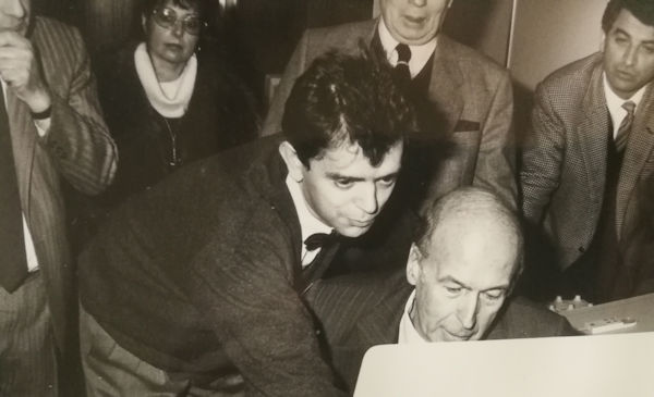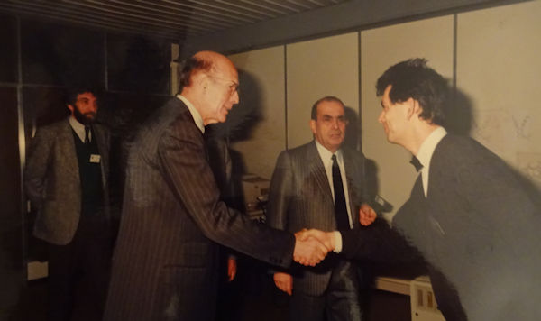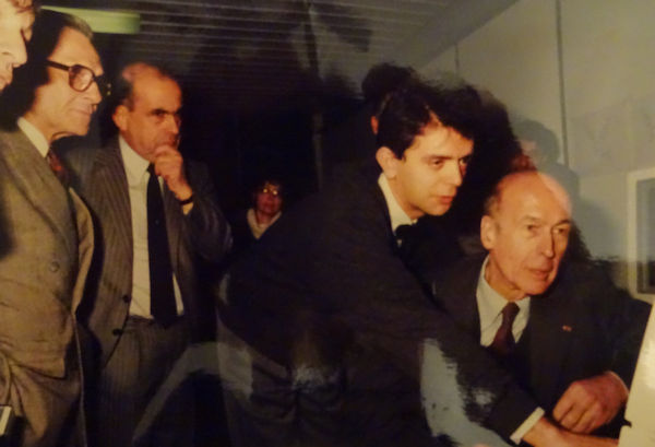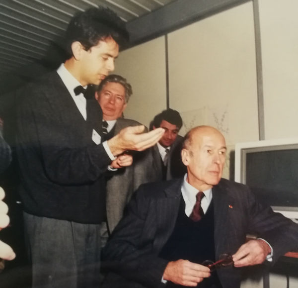 Mon bureau était un passage obligé pour tous ces visiteurs de renom, d’une part parce que c’était prestigieux pour Fabre et d’autre part parce que mon logiciel utilisait des techniques d’imagerie susceptibles de captiver aussi bien les scientifiques que le grand public. C’est ainsi que j’ai rencontré pas mal de people, dont Bjorn Borg (très sympathique) et… Valéry Giscard d’Estaing. De ce dernier, il se trouve que j’ai conservé des photos prises par le service Communication qui me les avait fait parvenir peu après.