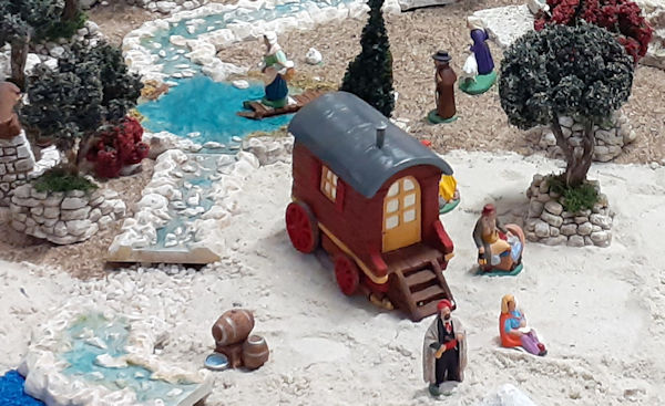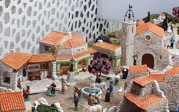 Le décor reproduisait un village provençal, avec son église, sa boulangerie, sa maison camarguaise, ses gitans en roulotte, ses oliviers, ses murs de pierre sèche, son champ de lavande et même un moulin et un phare. J’étais fasciné, avec un petit sourire béat, mais oui, comme un enfant.