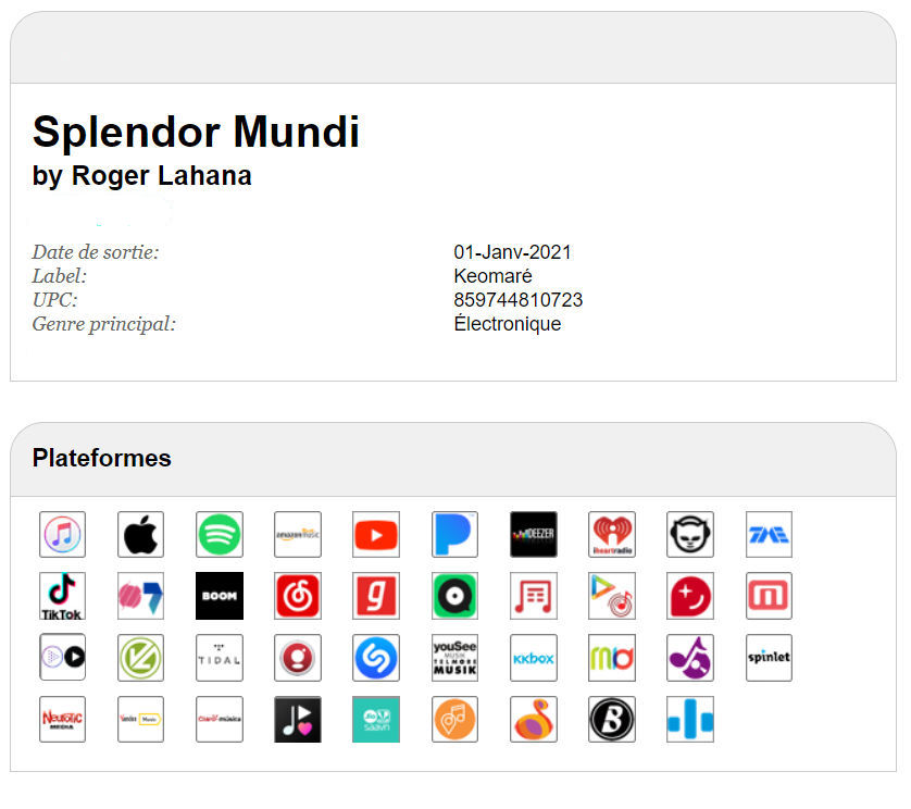 En attendant, vous pouvez aller écouter l’ensemble de ces pièces sur Deezer, Spotify, iTunes, Tik Tok, Amazon Music, Napster, Tidal, Yandex, Media Net et plusieurs dizaines d’autres.