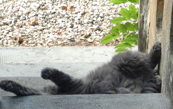 Pendant ce temps, les chats, bien que perturbés par tout ce qui se passe dans cette chambre, gardent leur concentration au max sur les choses les plus essentielles : manger et se prélasser dans toutes les positions qui leur passent par la tête. Pas vrai, Tsewa ?