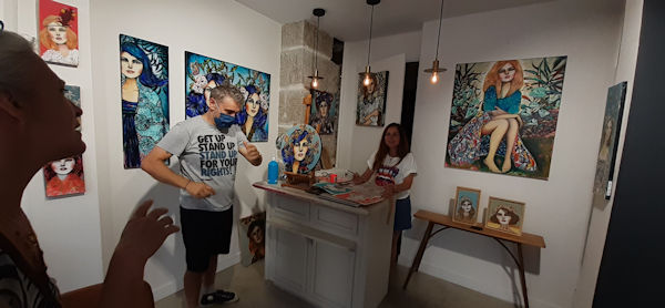 Nous les avons retrouvés vers 15 h. L’accueil était très chaleureux, ils nous ont raconté plein de choses, dont l’histoire de la vraie Jacqueline, celle qui a inspiré toute une série de tableaux dont « Jacqueline est une bombe ».