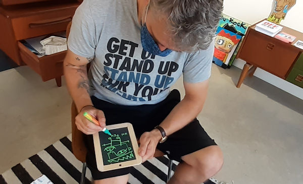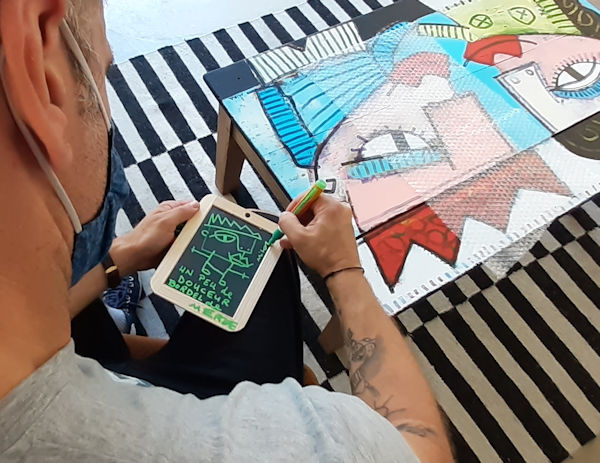 Mika a ajouté sur l’autre face (côté ardoise) un dessin original. Voici quelques photos pour raconter ce beau moment.