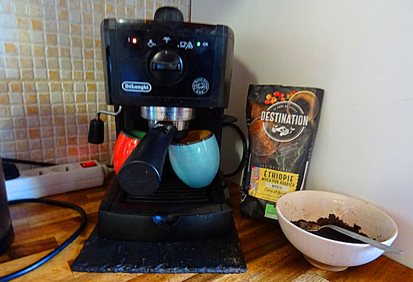 Le jour n’est pas encore levé, je suis toute seule sur le pont ( j’adore) et je m’en vais déguster mon premier café du matin.