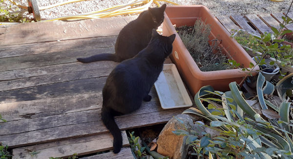 J’adore les chats qui se consultent devant la jardinière ; je pense qu’Anti va y faire quelque chose !