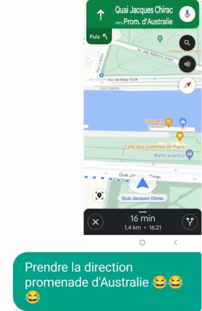 Mdrrr ! Mais, ça ne s’arrête pas là. Je cherche un café et demande mon chemin à Google qui me dit :