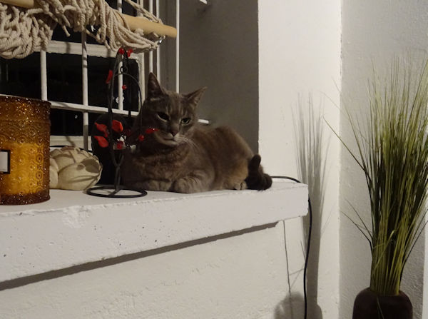 Pendant le repas, plusieurs de nos chats allaient et venaient sur la pelouse ou plus près de la table, ils ont visiblement beaucoup aimé, eux aussi, cette nouvelle installation.