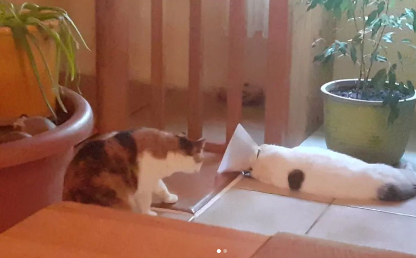 Chouquette est allée lui tenir compagnie peu après son retour à la maison.