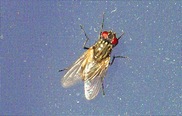 Au final, c’est plutôt joli une mouche. Celle ci a une belle robe irisée et des lunettes rouges de star.