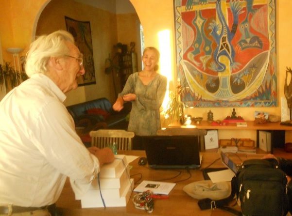 J’ai une tortue verte à pois qu’il m’avait offerte et qui est là tout près à se promener dans ma maison selon mes désirs. Et puis les Fabricolages ! Quel magnifique monde ! Nous avions passé d’excellents moments ensemble lorsque nous partagions le stand des Éditions du Puits de Roulle lors des salons.