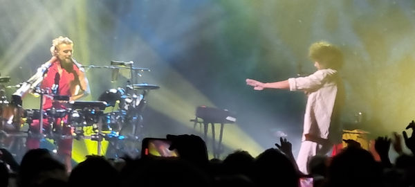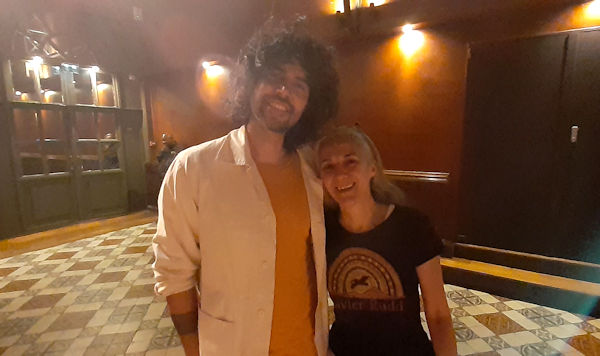 La photo où Xavier et Bobby sont ensemble sur scène est de Stéphanie. Et la dernière photo montre, bien sûr, Bobby et Stéphanie, on l’a croisé alors qu’on était sortis quelques minutes dans l’espace bar. Il a accepté avec beaucoup de gentillesse de prendre le temps de poser pour que je règle mon téléphone qui restait obstinément bloqué en position vidéo pendant d’interminables secondes, alors qu’il venait de nous dire qu’il ne pouvait pas rester très longtemps avec nous parce qu’il devait rejoindre Xavier sur scène. Vraiment adorable.