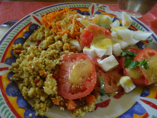 Miam ! Qué régalo euh… Qué lujo ! C’était un déjeuner parfaitement équilibré, doux, léger mais nourrissant, coloré, joyeux ! Tout ça et plus encore. Manger les fruits, légumes ou plantes du jardin me remplit d’une profonde gratitude pour la nature en général et pour la nourriture en particulier. Quand je vois le temps que des citrons, par exemple, mettent à mûrir, waouh ! Ou des tomates ou tout ! Ce parcours entre la graine et le fruit… le temps consacré à m’en occuper, l’eau, les éléments… ça me procure un sentiment profond de toucher au sacré.