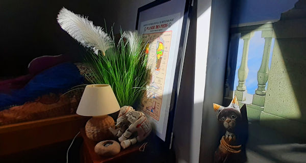 Je fais bien entendu partie des heureux patients qui lui confient leurs pieds pour stimuler tel ou tel organe ou système à rééquilibrer. Et je suis époustouflé par l’efficacité de ses manipulations expertes. Son cabinet provisoire est installé dans l’une des pièces aménagées dans nos combles – ambiance chaleureuse garantie.