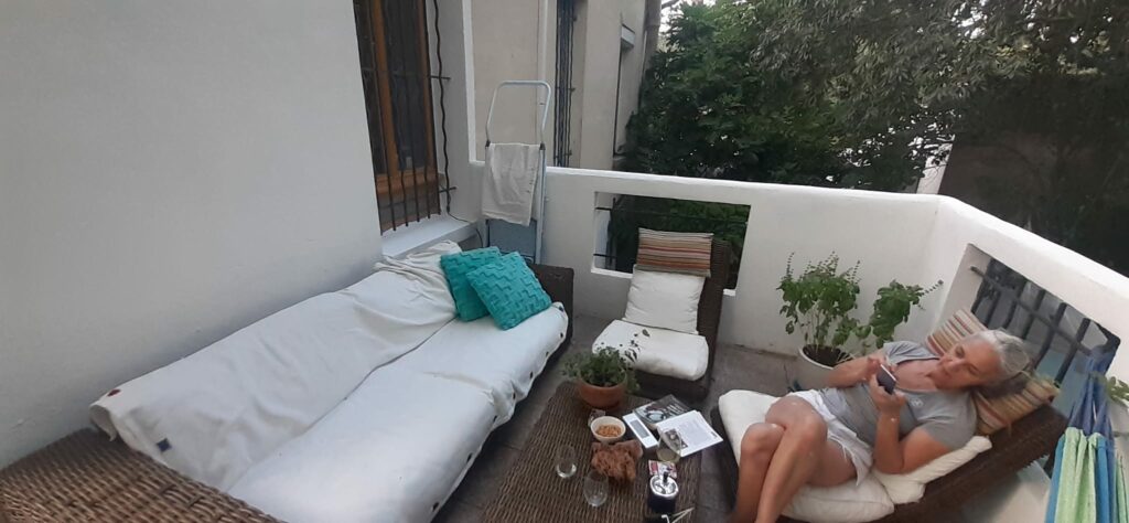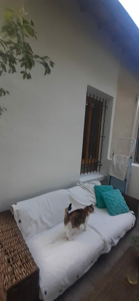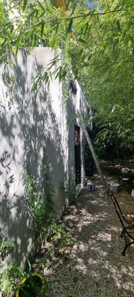 Ça, c’était samedi. Ok. Mais dimanche ? Eh bien, dimanche, j’ai fini de peindre le dernier mur de la terrasse resté en l’état l’été dernier pour cause de trop grosses chaleurs.