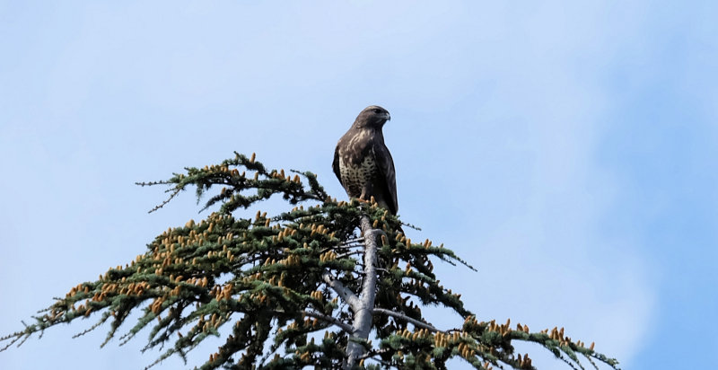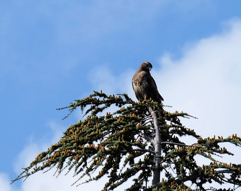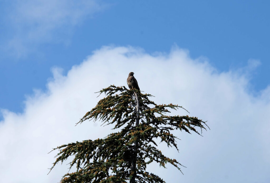 C’était bel et bien une pie qui manifestait son mécontentement auprès d’une magnifique buse qui squattait « son » arbre !