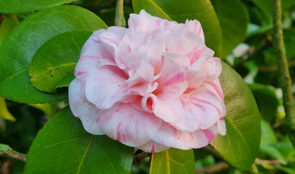 Courses, ménage, vaisselle, préparation de salades, jardinage (ben oui, on ne se refait pas 🙂 et Tata a toujours aimé son jardin et ses platebandes que je voulais nettoyées à son arrivée). Pour l’occasion très certainement, le camélia avait sorti une première fleur (magnifique).