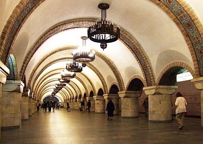 Métro de Kiev. Le métro de Kiev est réputé notamment sa profondeur (plus de 100 mètres un des plus profond jamais construit), sa grande efficacité ainsi que pour la magnificence de ses stations (la plupart des métros de Russie et ex URSS comme l’Ukraine sont de véritables « palais souterrains ». Pour l’avoir emprunté plusieurs fois, je confirme !