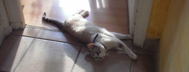 Pendant ce temps, Anti a repeint les toilettes en jaune, avec une peinture granuleuse, spéciale pour les murs pas du tout lisses qui étaient cachés jusque-là par une tapisserie banale et des lambris tout autant. C’est très réussi et beaucoup plus dans le style du reste de la maison, très couleurs du Sud. Elle a ensuite refait la déco de cet endroit si indispensable où il fait bon se poser, de temps en temps, pour méditer, tout ça. Sur les murs, quelques photos de désert et le drapeau de Cuba. Dans un coin, un bouquet de plantes sèches. C’est devenu très zen. Anti a aussi démonté les quelques planches où on posait des tas de trucs. Plus de planches, plus de trucs dessus. Et, pour finir, on a viré la caisse des pas-si-petits chats puisque les beaux jours sont de retour et qu’ils n’ont plus aucune excuse pour continuer à faire leurs besoins dedans. La pièce a l’air immense (OK j’exagère un peu, mais comme je disais à l’instant, ici, c’est le Sud) alors qu’elle doit faire environ 1 m2.