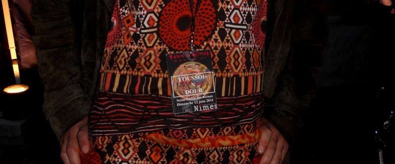 21h10 : Un monospace se gare près de l’entrée derrière la scène. Tous les musiciens en descendent. Deux minutes plus tard, une voiture arrive. Youssou en descend avec La Gazelle. Nous entrons avec eux dans le saint des saint : les coulisses. Grande accolade avec Youssou, que je revois pour la première fois depuis un petit paquet d’années.
