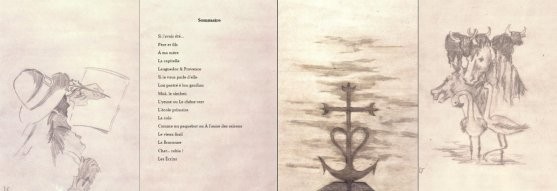 Les poèmes ont un rythme très musical puisqu’ils sont basés sur l’usage d’alexandrins. Les vers ont du souffle, les mots sont ciselés et, même si vous ne pouvez pas écouter l’auteur les dire, vous « entendez » l’accent du Midi derrière chaque envolée. Quant aux dessins, ils sont superbes et très joliment mis en valeur par la mise en page du livre.