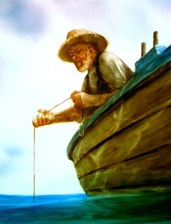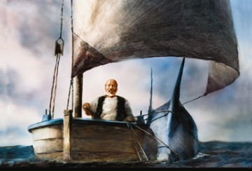 Santiago qui décide de partir en mer chaque jour, vaille que vaille, de plus en plus loin chercher le poisson qui lui permettra de retrouver l’estime de ses pairs. Santiago qui rencontre le poisson. Son poisson.