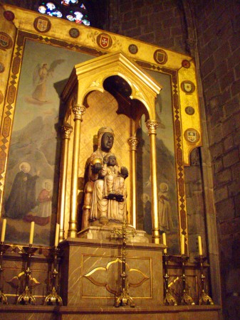 La vierge noire, que les Espagnols surnomment la Moreneta est donc la Sainte Patronne de la Catalogne. La statue originale se trouve à Montserrat (à une cinquantaine de km au nord de Barcelone, dans les montagnes) où toute une légende lui est rattachée.
