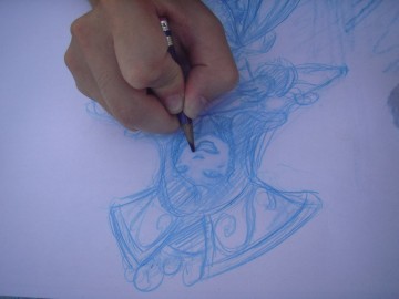 Des croquis superbes, pris en photo par Anti. Vous en avez quelques vues ici. Anti a même récupéré le napperon avant de partir, il est à la maison, maintenant.