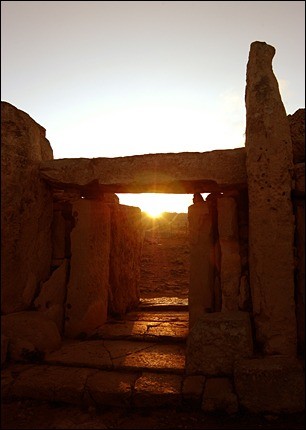 Celui de Mnajdra est édifié de telle manière que les rayons du soleil levant du solstice entre dans le couloir central. (nda : A voir, une vidéo qui montre parfaitement comment les rayons du soleil indiquent le début de chaque saison >ICI< /// Pour en savoir plus, une documentation de la cité des sciences : Le Soleil, mythes et réalités d’une richesse !)