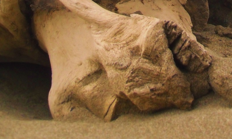 Comme Colors, j’ai été étonnée par le côté souffrance, martial, lutte qui se dégageait de cet arbre échoué. Une des photos qui m’impressionne le plus est la sixième en partant du haut, du fait de la lumière qui tombe sur ce que j’appelle son œil, on dirait que l’animal est vivant. Tout comme la dernière photo où l’on peut voir une larme crier (oups ! couler !), la troisième, un animal hurler qui aurait été transformer en bois pour rester ainsi figé dans le monde végétal. Au fait, ça existe un mot pour dire transformer en bois ? Transformé en pierre, il y a pétrifié. Transformé en eau, il y a liquéfié, mais transformé en bois ???