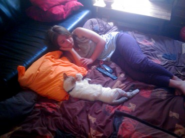 Gwlad a élu domicile à côté de notre chambre, en annexant provisoirement la plus chaude de la maison, celle d’Enzo. Ce dernier nous rejoindra le weekend prochain. A peu près en même temps, nous devrions voir débarquer pour une semaine Victoria (alias Vito), la meilleure copine de Gwlad, et son frère, venus de la ville mythique de Malakoff.