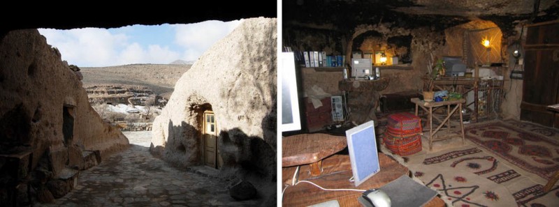 Sur la dernière photo à droite, le cybercafé de Maymand. L’habitat préhistorique n’empêche pas la modernité !