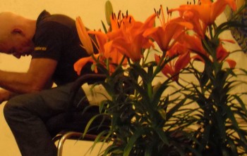 C’est à cause de nos vacances dans les Alpes. On a rejoint notre lit vers 3h du matin. Bien sûr qu’à cette heure-là, après cinq heures de route aller-retour, je n’allais pas me mettre à écrire mon mot d’accueil. Du coup, pour qu’il soit prêt pour 8h30 comme d’hab, j’étais debout à 6h pour l’écrire, choisir les photos, les recadrer, les insérer dans le texte et programmer la mise en ligne pour l’heure dite. En cours de route, à 6h30, j’ai réveillé Gwlad (elle préfère se lever un peu tôt pour se préparer sans speeder), puis à 7h, juste quand je finissais de boucler ma note, j’ai réveillé Dorian. Ensuite, j’ai lancé un café pour Anti qui dormait à poings fermés, je l’ai posé sur sa table de nuit, j’ai filé sous ma douche, pris mon petit dèj, regardé un bout de Télé Matin et hop, c’était 7h35, l’heure de partir au collège pour y déposer les enfants. Retour à 8h et seconde tentative de réveil d’Anti complètement dissimulée sous la couette sauf le pied droit. Cette fois, elle s’est marrée et a ouvert les yeux. Dans un état disons cotonneux, elle est venue me rejoindre sur le canapé pour écouter les infos. Ensuite, c’était l’heure pour moi d’aller au boulot et pour elle aussi, même si elle restait sur place. On s’est retrouvé pour manger ensemble à midi sur la terrasse (oui, oui, il faisait encore beau), ensuite re-boulot, retour à la casa, activités diverses, repas du soir et là, allez savoir pourquoi, grand coup de barre.