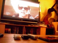 Stéphane est reparti et la partie de Monopoly commencée jeudi dernier a pu se terminer. Pendant ce temps, j’ai revu le DVD de Terminator. En fait, le film passait sur une chaîne de Canalsat et j’en avais vu un petit bout du début quand j’ai dû éteindre parce qu’on passait à table. Du coup, j’ai eu envie de reprendre le film là où il en était arrivé. La photo ci-contre est celle de la scène où, pour la première fois, Schwarzie utilise sa réplique devenue culte : « I’ll be back ». Et, de fait, il revient et casse tout, ah la la, c’était bien la peine de faire le ménage dans le commissariat.