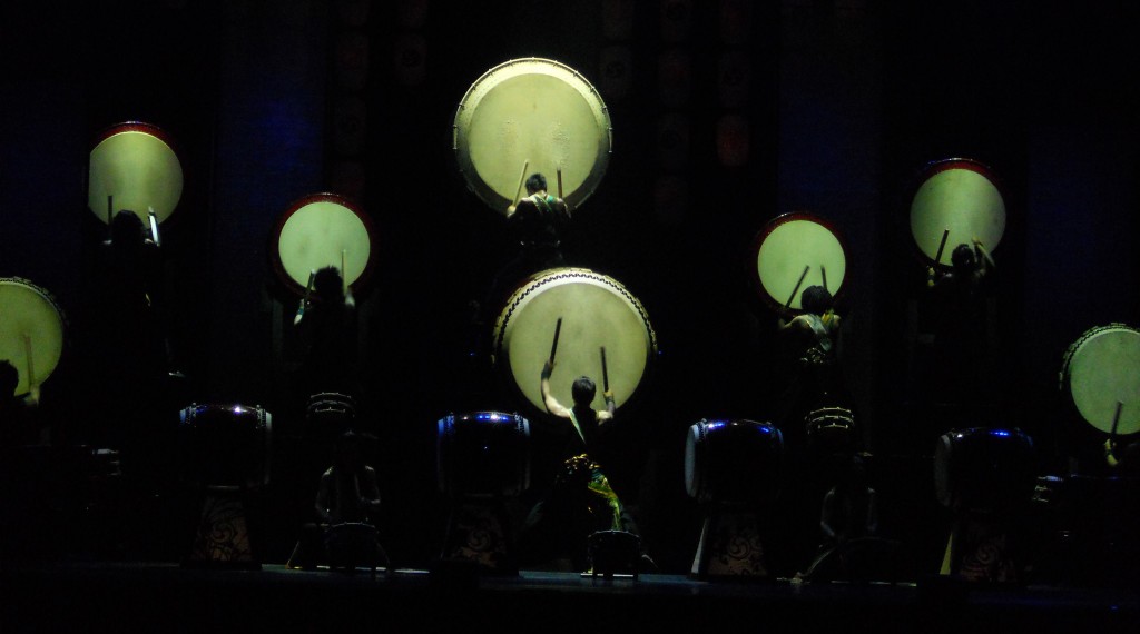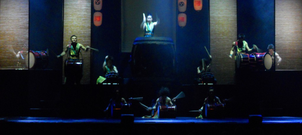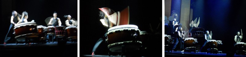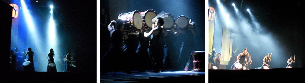 J’ai retrouvé un article du Figaro qui décrit exactement ce que nous avons vu et ressenti : « Les garçons ont des corps d’athlètes, des poses de guerriers, mais pas la solennité. La troupe opte pour la démonstration basée sur des postures de mangas et une gestuelle proche de l’aïkido. Ce sont des acrobates, des mimes, des poètes pleins d’humour. Ils accrochent un beau sourire à leur face, mais frappent avec rage la peau de leur tambour, comme pour conjurer la peur qui les étreint.«
