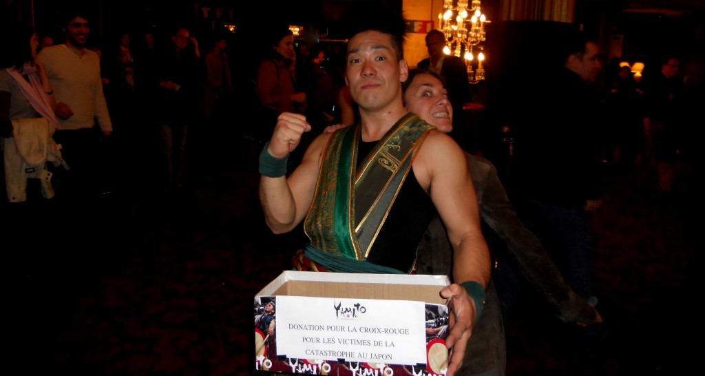 Qui a dit que les Japonais sont des gens froids et impassibles ? Nous avons rarement rencontré plus chaleureux qu’eux. Loin de se laisser submerger par la tristesse, ils nous ont offert une soirée emplie d’énergie et de rires, ajoutant aux rythmes extraordinaires qu’ils jouaient sur des tambours traditionnels des sketches et des danses.