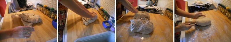 Il y a une semaine, Anti a préparé son levain, à base de farine, d’eau, de miel et de quelques autres ingrédients. Elle l’a laissé fermenter pendant cinq ou six jours. Avant-hier, elle a pétri la pâte vigoureusement et séparé le tout en deux grosses miches. Comme on hésitait sur leur forme, elle en a fait une ronde et l’autre allongée.