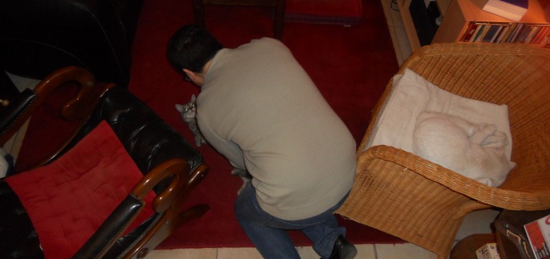 Quelle rigolade ! J’ai adoré cette soirée ensemble. C’est vrai que j’ai eu plus l’impression de retrouvailles que d’une première rencontre cela étant dû certainement au fait de se « connaître » un peu déjà via le blog. En plus Olive et Chwip sont de vrais amoureux des chats. Il a juste fallu vérifier qu’il n’en manquait pas à leur départ 😉 Gus Gus ? GUS !!! Ah. Il est là 😉