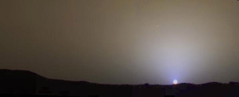 Lorsqu’il y a une forte accumulation de bleu autour du soleil couchant vu de Mars, c’est qu’il y a probablement une forte concentration de poussières dans cette direction – de même que nos crépuscules sont d’autant plus rouges que l’air est épaissi par les poussières et la pollution.
