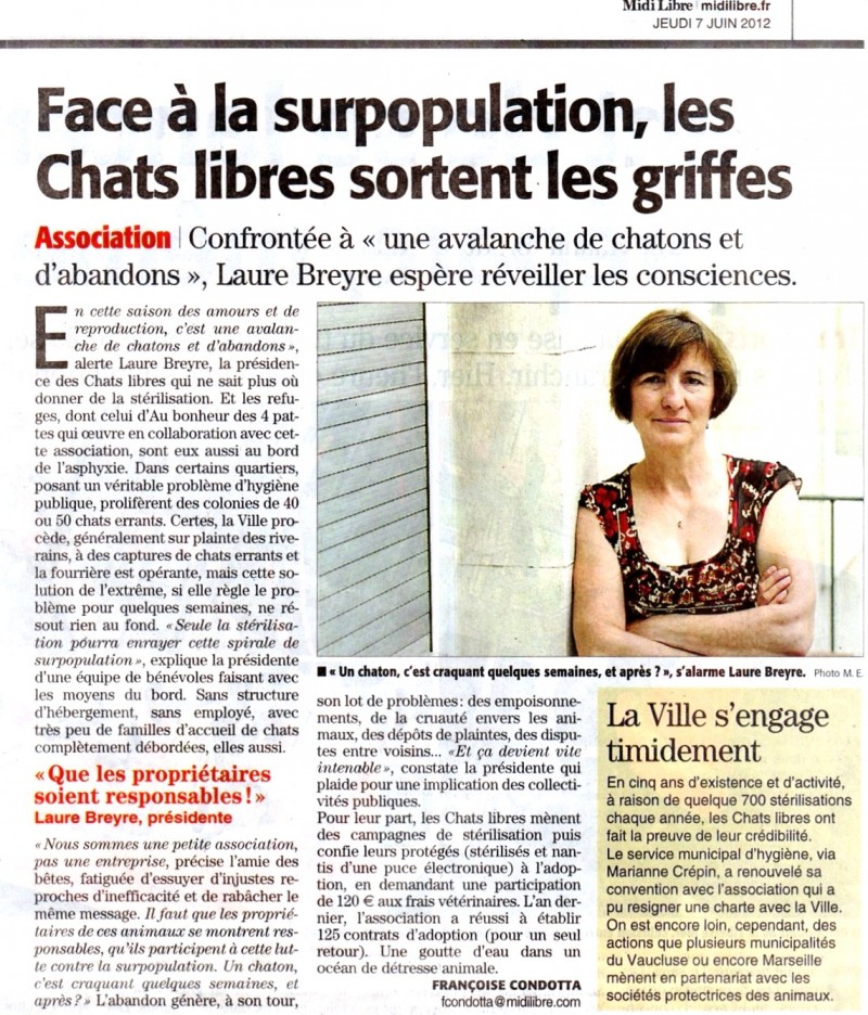 Excellent article de Françoise Condotta, en première ligne pour aider les bénévoles des Chats Libres à mieux faire connaître leurs actions.