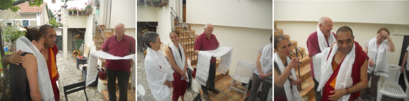 Avant de nous quitter, il nous a remis à tous les traditionnelles katas blanches, de très beaux modèles brodés. Anti a offert les deux nôtres à Gwlad et Anghbor qui ont gardé un excellent souvenir des deux soirées de rire et de bonne humeur passées en 2009 à la maison avec les moines.