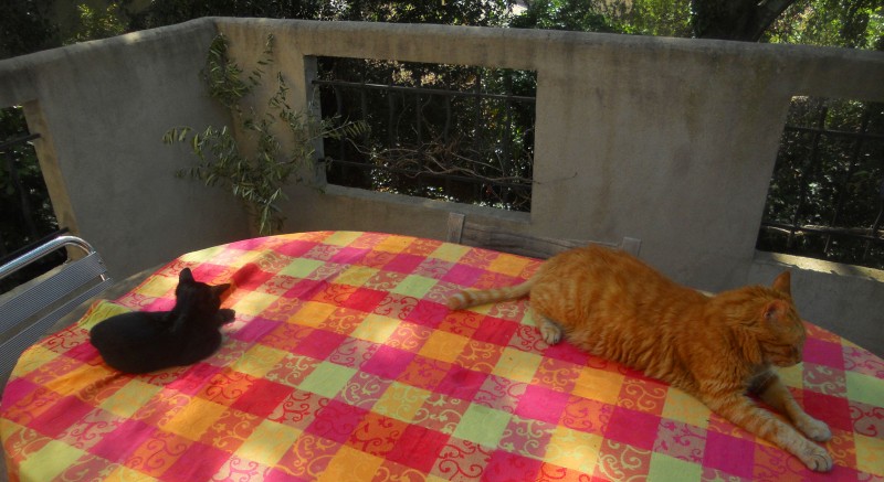 Ensuite, la chaleur. Oui, c’est l’été cette fois, même si on ne sait pas pour combien de temps. Le thermomètre se balade depuis plusieurs jours au dessus de 35° l’après-midi. La nuit, nous dormons la fenêtre ouverte et le volet roulant pas tout-à-fait baissé. On s’endort au chant du rossignol, on se réveille avec celui des cigales. Si ça ça ne sent pas les vacances…