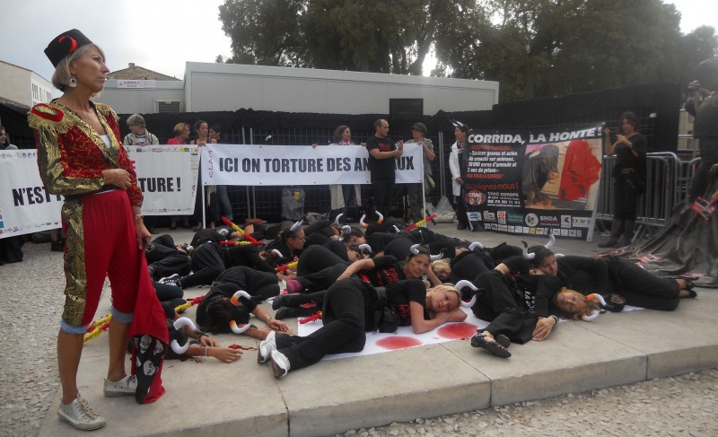 Le lendemain, les seuls qui affirmaient dans la presse que nous (oui, nous) avions eu une attitude haineuse et provocatrice – je rappelle qu’on était juste couchés par terre immobiles – ont été les aficionados (normal) et la responsable de cette autre association censée être dans le même camp que nous (charmant). Et pourtant, certaines de ses militantes étaient là avec nous, comme on le voit sur les photos.