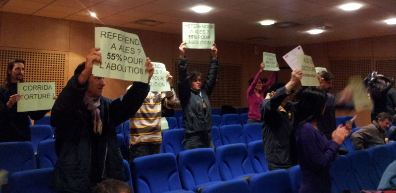 Les réunions d’un conseil municipal, la plupart du temps, c’est interminable et très ennuyeux. Croyez bien que si nous, militants locaux du CRAC, y assistons à Alès pour la troisième fois depuis le mois de décembre, ce n’est pas parce qu’on ne sait pas quoi faire de nos journées et de nos soirées, mais parce que notre motivation à mettre le maire pro-corrida sous pression est totale.