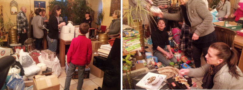 Nous devions faire 24 lots, dont deux plus « riches » pour les futurs gagnants de cartons pleins. Laure nous a donné ses instructions et nous avons procédé à un tri grossier puis à la mise en lots avec une efficacité qui nous a surpris nous-mêmes.