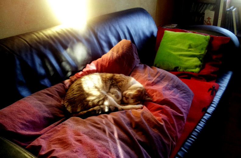 Les chats ont tous été ravis de me voir aussi tôt et m’ont fait la fête à grands renforts de ronrons (surtout Gus, particulièrement câlin).
