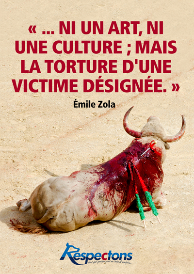 En tout cas, vous pouvez compter sur nous pour faire comprendre au maire de la ville que la barbarie doit cesser. Vous annuleriez de vous-même toutes ces séances de torture, vous recevriez tous nos remerciements et félicitations pour votre clairvoyance. Dans le cas inverse, il faudra peut-être constater que votre activité est génératrice de troubles à l’ordre public et qu’il convient de l’interdire. Il serait temps. Quoiqu’il arrive, pour la première fois, nous serons plus nombreux dehors, citoyens abolitionnistes, que les sadiques et tortionnaires à l’intérieur.