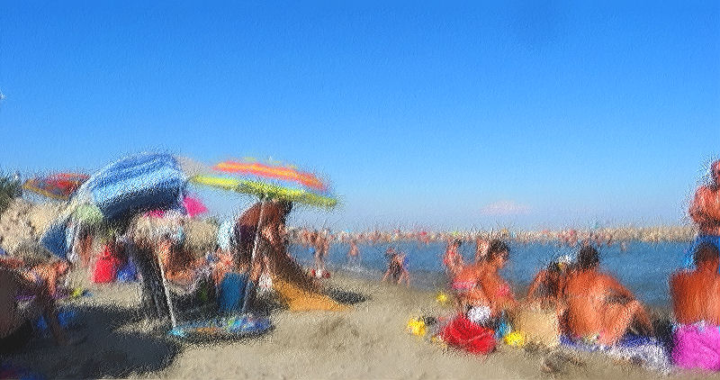 Aujourd’hui, Victoria rentre chez elle. Aussi, hier après-midi, nous sommes allés à la plage une dernière fois tous ensemble. Comme il s’agissait d’un dimanche d’août, nous avons prudemment évité les destinations les plus bondées (donc, exit le Grau du Roi ou la Grande Motte) et les horaires les plus chargés : départ de la maison tranquillou vers 16h en direction des Saintes-Maries.