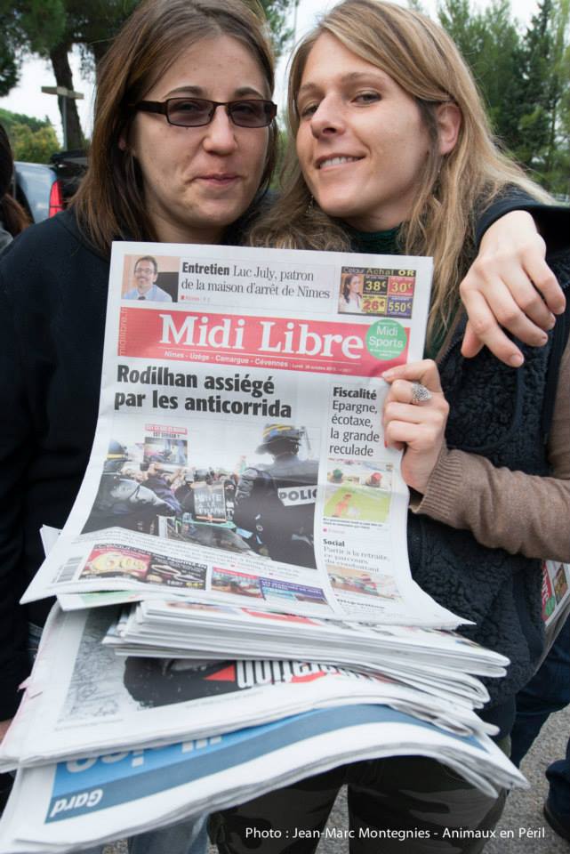 Quelques milliers de kms nous séparent… Mais d’ici un an et demi environ je serai des vôtres, et à moins qu’un bouleversement politique n’ai favorisé une prise de conscience au plus haut niveau, et que les corridas fassent alors partie du passé, je serai dans les rues et dans les arènes avec vous, je vous en fait la promesse…
