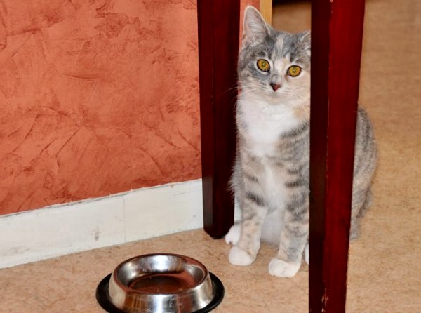 Fine gastronome, je sais me faire comprendre en miaulant très fort quand je crève la dalle… Quand mon humain de compagnie fait semblant de ne pas comprendre, je lui fais un « croche patte », la dernière fois il a découvert de près la dureté de ses murs… lui par contre n’a pas fait de trou dans le mur… Petit joueur…