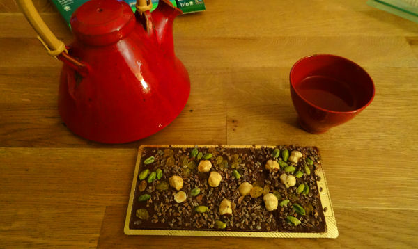 Pendant ce temps, Anti et Valentine ont fait une balade à Arles, entre autres pour passer chez Chloé la potière. Anti en a ramené plein de belles choses, comme toujours et qui allaient très bien avec les chocolats exceptionnels offerts par Valentine.