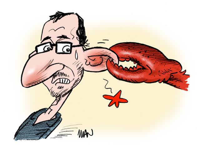 Dans sa pièce Accidens, un homard au départ bien vivant est tué à la vrille sous les yeux du public, puis cuisiné et mangé. Et pourtant, Rodrigo Garcia a déclaré publiquement : « Jamais je n’accepterai de tuer un animal ». Peut-être qu’à ses yeux, un homard n’est pas un animal. Peut-être pense-t-il que les homards sont des végétaux qui poussent dans les champs d’algues. Les homards, comme tous les animaux, ressentent parfaitement la douleur comme l’ont montré des expériences épouvantables où ils sont soumis à une décharge électrique envoyée dans le bocal où on les place. Il est vrai qu’ils ne peuvent pas hurler. Les muets non plus et ça ne les empêcherait pas d’avoir mal s’il venait à l’esprit de quelqu’un de les ébouillanter vivants ou de les transpercer avec une perceuse.